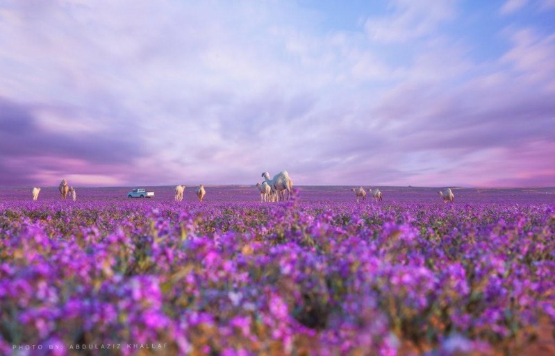 وتنمو زهرة الخزامى العطرية في شكل سنبلة، عليها أزهراء بنفسجية صغيرة على سيقان طويلة، في شمال شرق السعودية، بعد موسم الأمطار، وهو اللي أكده سكان المنطقة لصحفيين وكالة فرانس برس.