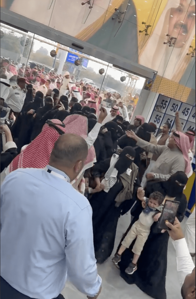ويظهر الفيديو عشرات النساء يرتدين العباءات السوداء ويدفعن بسرعة إلى صالة، مع تعليق زعم أنهن يتسابقن لحضور حفلة المغنية الأمريكية جنيفر لوبيز.