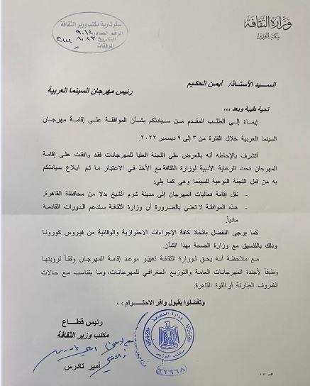هتقام النسخة الأولى من مهرجان السينما العربية في شرم الشيخ خلال الفترة من 3 لـ 9 ديسمبر/كانون الأول، بعد ما وافقت اللجنة العليا للمهرجانات في وزارة الثقافة على الفكرة.