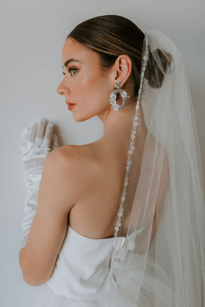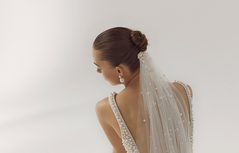 وتتميز بتسريحة مشدودة وملساء، مما يجعلها مثالية لتثبيت التاج أو الطرحة الطويلة، لتضفي لمسة من الفخامة.