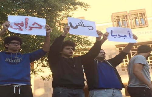 نظم طلاب الجامعة الأمريكية في القاهرة، وقفة احتجاجية ضد زيادة المصروفات الدراسية في الجامعة من 370 ألف لـ 730 ألف جنيه في السنة الواحدة، ورفع الطلاب لافتات بتقول: “لا لتسليع التعليم”.