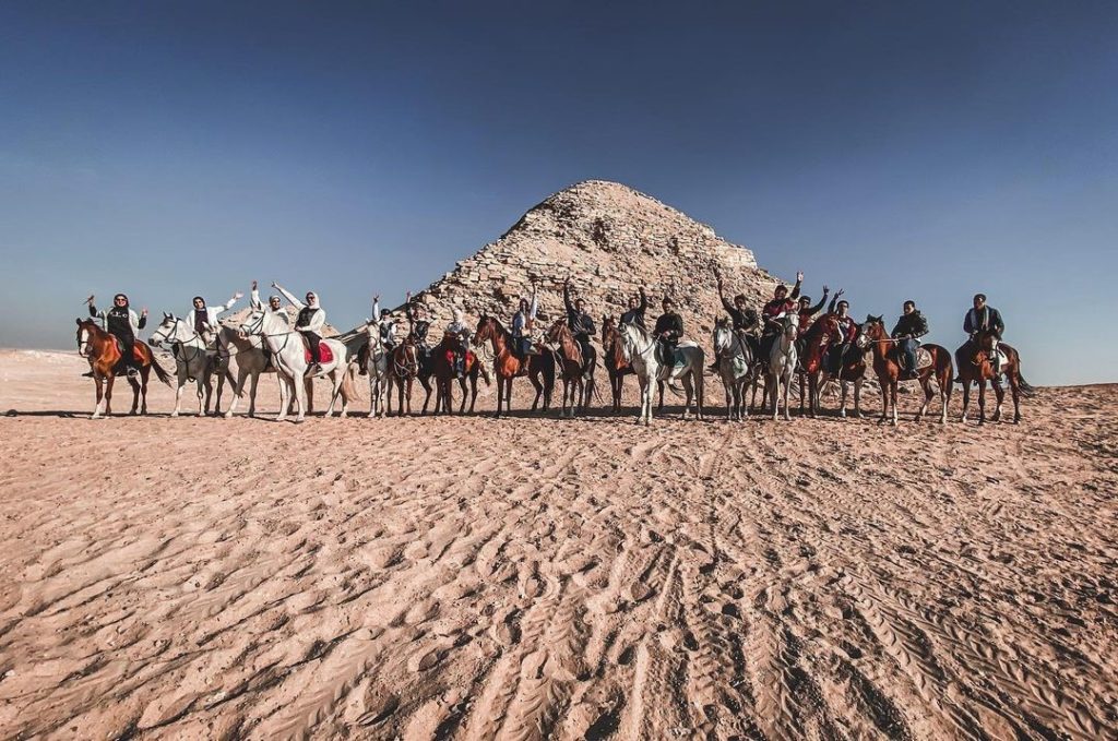اليوم بدأ بإننا اتجمعنا في المزرعة، الناس كانت لطيفة جدًا, شربنا قهوة وبدأنا نلف نتفرج على الحصنة ونتصور معاهم. المزرعة فيها أنواع من الخيل كتير، هتتعرف على شوية منهم لحد ما الحصنة اللي هتتحرك بيها تجهز. قبل ما بتركب بيسألك الكابتن لو كانت دي أول مرة أو ركبت قبل كده علشان يقدر يختار لك الحصان الصح. وبعدها بيعرفك على أساسيات ركوب الخيل. وبتبدأ الرحلة من الجبل من بوابة أهرامات أبو صير. الرحلة عبارة عن ركوب حر للخيل وأكتر حاجه هتستمتع بيها لما الخيل يجري. لو دي أول مرة ليك ممكن تكون خايف شوية بس الكابتن بيكون موجود معاك وبيخليك تجرب. الجري بالخيل سهل جدًا وماتخافش مش هتقع.. كمان بياخدوا الخيل في آخر كل أسبوع الفيوم وبتكون الطلعة مميزة جدًا على البحيرة.