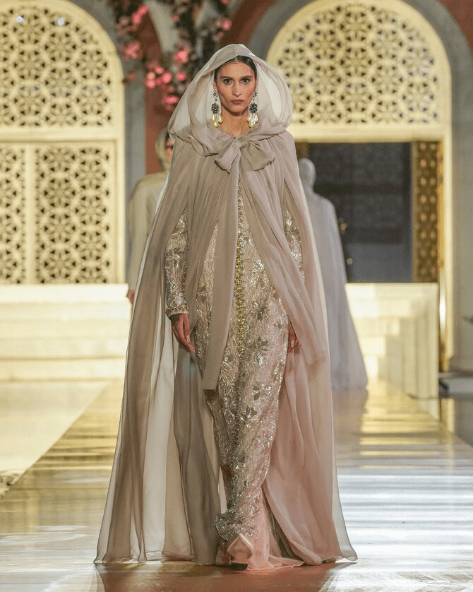 ومن بين هذه الماركات، تبرز ماركة Abayat Guin البحرينية التي قدمت عباية شفافة ذات تفاصيل دقيقة تُضيف لمسة من الفخامة على الإطلالة.