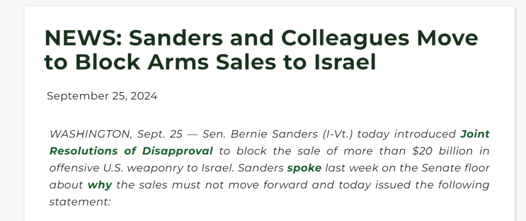 العضو المستقل في مجلس الشيوخ الأمريكي “بيرني ساندرز” يعلن إنه تقدم مع عدد من زملائه بمشروع قرار لمنع بيع أسلحة هجومية إلى “إسرائيل” قيمتها أكثر من 20 مليار دولار.