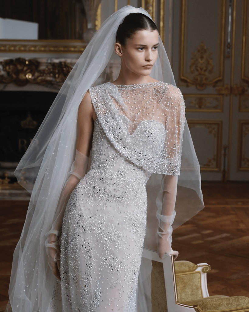 وأخيراً يعتبر الكاب الطويل المطرز والفساتين ذات الذيل القابل للفصل من أهم التوجهات التي رسختها بقوة إيلي صعب bridal collection 2027.