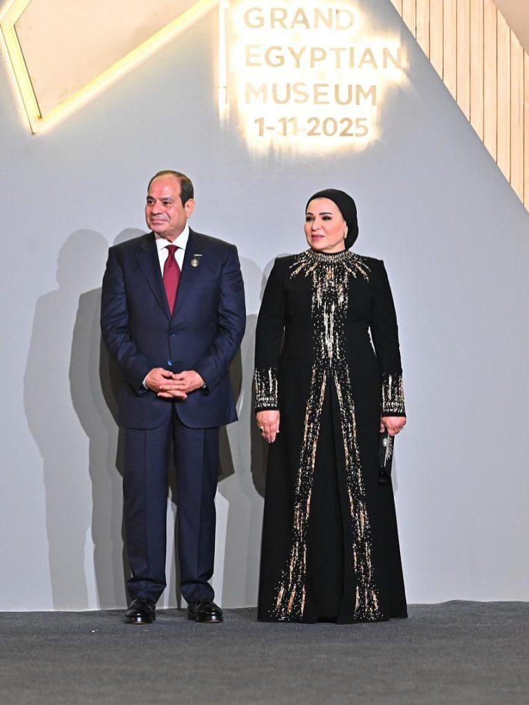فستان السيدة انتصار السيسي في افتتاح المتحف المصري الكبير