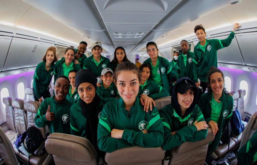المنتخب بينطلق في مشواره بقيادة المدربة الألمانية مونيكا ستاب، وتشكيل اللاعبات كان: سارة خالد – بيان صدقة – لانة عبدالرزاق – تالة الغامدي – لين محمد – ليان جوهري – مريم التميمي – نورة إبراهيم – سارة حمد – البندري مبارك – البندري هوساوي. أول هدف رسمي في تاريخ منتخب السعودية للسيدات سجلته اللاعبة البندري مبارك في الدقيقة 14، أما الهدف الثاني سجلته اللاعبة مريم التميمي بضربة جزاء.