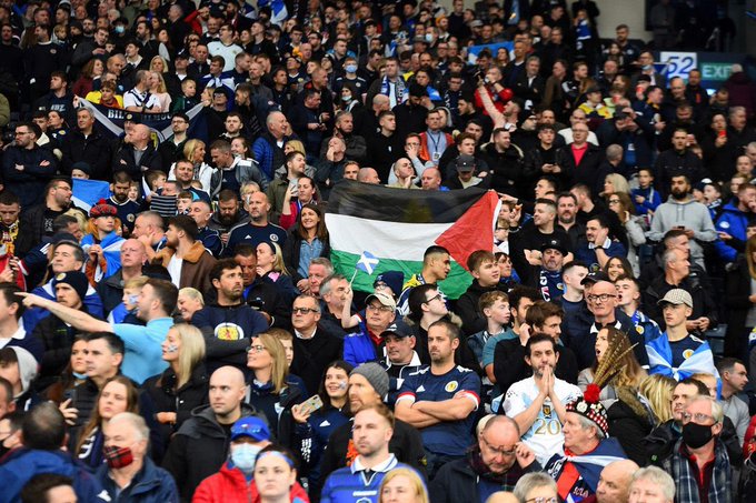 الواقعة دي كانت في تصفيات كأس العالم في أكتوبر 2021، تحديدًا في مباراة اسكتلندا مع إسرائيل، لما رفع مشجعين من الجمهور الأسكتلندي علم فلسطين ولافتات بتدين جرائم إسرائيل مع الشعب الفلسطيني.
