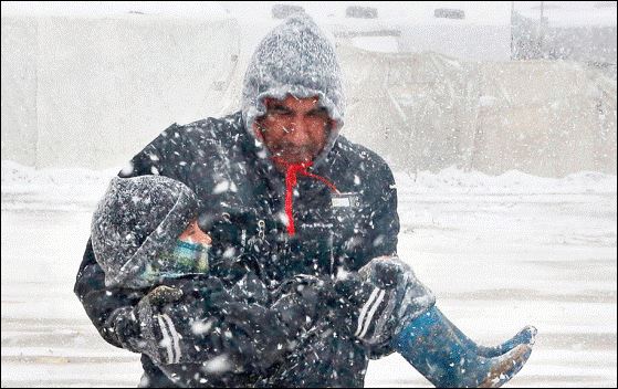 أكتر من 1.5 مليون إنسان بيعيشوا في الخيام واللي انهار جزء كبير منها وبقت غير صالحة للسكن وغير آدمية بسبب موجات الطقس السيء. ومن ضمن الضحايا طفل في مخيم في قسطل المقداد بسوريا، مات بعد ما انهارت خيمته بسبب تراكم التلج فوقها! وطفلين 3 سنين و5 سنين فقدوا حياتهم في مخيم شمال حلب، بسبب حريق في خيمتهم وهما بيستخدموا الدفاية.
