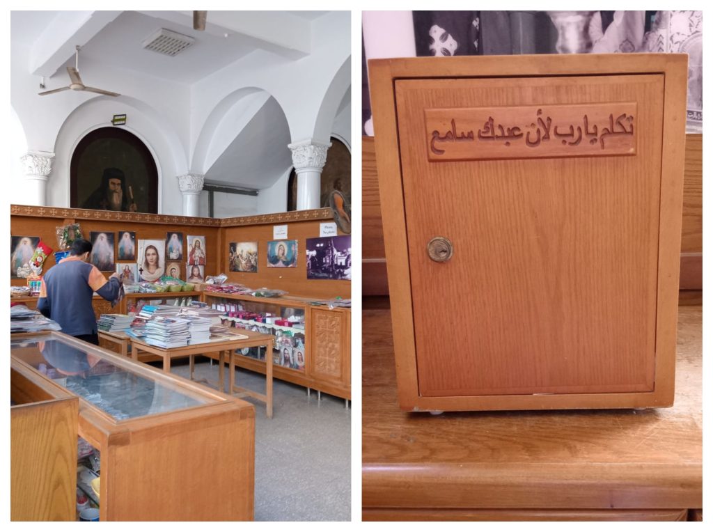 من عند الباب، سمعت أصوات جرس الكنيسة، وأول حاجة قابلتها معرض لبيع الكتب الدينية والهدايا التذكارية لرأس السنة، ودخلت قعدت مع المسؤول، اللي رشحوهولي علشان يتكلم عن تاريخ المكان، ولحد اللحظة دي ماكنتش أعرف إن الكنيسة دي هي صاحبة المعجزة الأشهر في مصر.. وده اللي عرفته بعد ما اتكلمت مع خادم الرب دكتور عدلي نصحي، والمسؤول عن تبرعات الكنيسة.