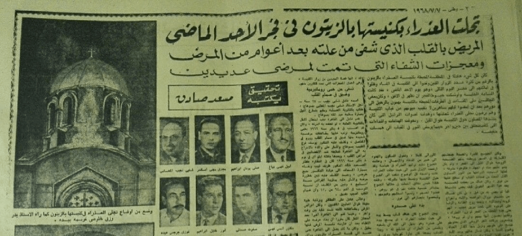 رجعوا مرة واتنين واتحقق منها وادى خبر للقيادة الكناسية والبابا كرولوس السادس، ووقتها وصل الكلام لجمال عبد الناصر وللجنة تقصي الحقائق، ووقتها المسؤول عن التقصي قعد يدعي بعلامة تأكد له إنها القديسة مريم، وقال إن العلامة اتحققت برفعه للسما عن طريق ملاك أخد بإيده، ومن بعدها بقى مئات الآلاف من الأقباط بييجوا المكان علشان يشوفوا المعجزة ويتباركوا، وجيه عبد الناصر بنفسه علشان يتأكد، وختم كلامه: “ظهورها كانت بمثابة رسالة سلام نفسي لطمأنة الشعب المصري خصوصًا بعد نكسة 67”.