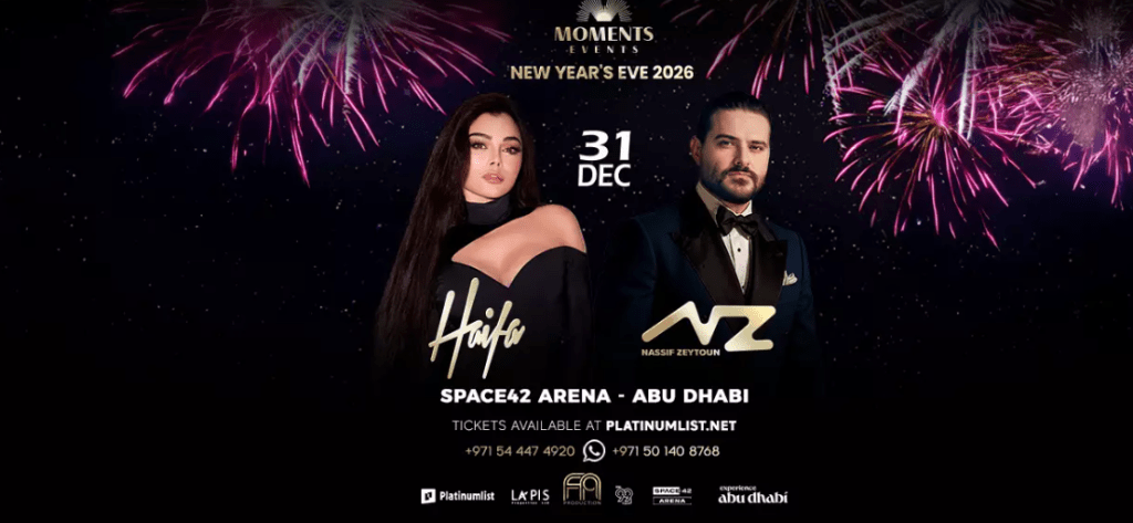 تأتي ليلة رأس السنة بوهج إضافي مع لقاء يجمع ناصيف زيتون وهيفا وهبي يوم 31 ديسمبر في سبيس 42 أرينا أبو ظبي.