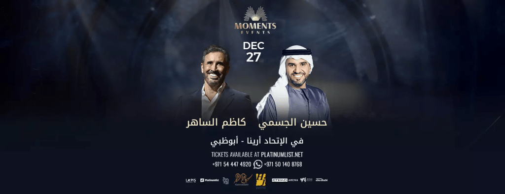 يشهد ديسمبر لقاءً استثنائياً يجمع “الجبل” و”القيصر” في الاتحاد أرينا أبوظبي ، يقدم حسين الجسمي أعمالاً مثل “بشرة خير” و”بالبنط العريض” و”أحبك”.