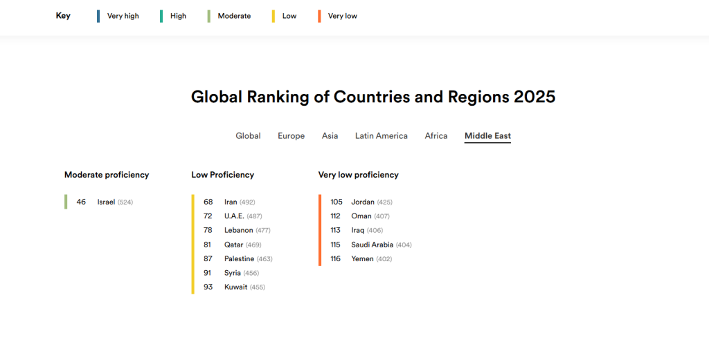 الدول العربية في الشرق الأوسط بمؤشر كفاءة اللغة الإنجليزية 2025
