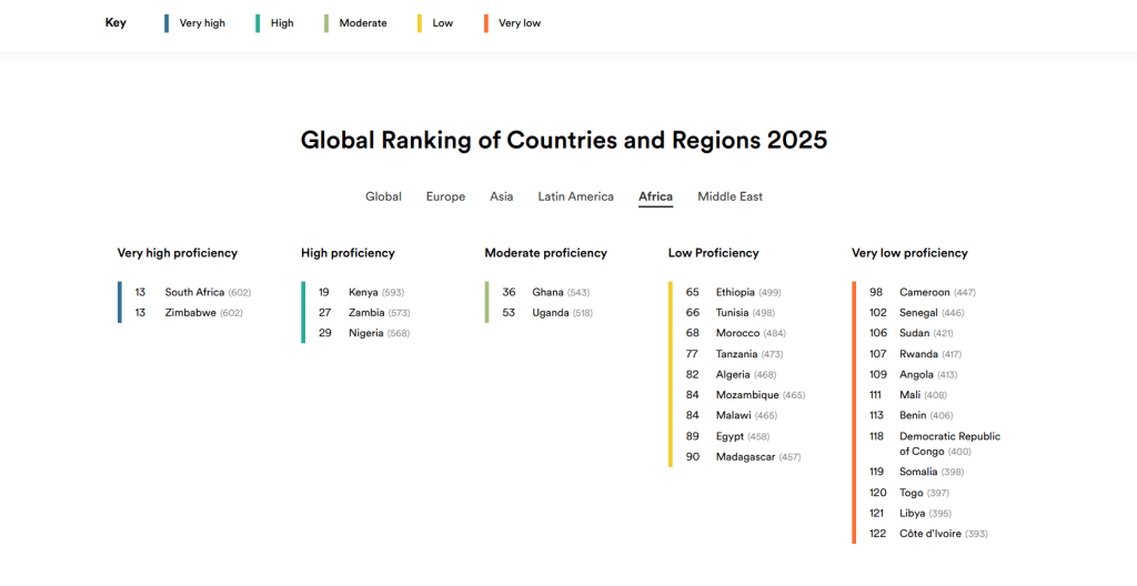 الدول العربية في إفريقيا بمؤشر كفاءة اللغة الإنجليزية 2025