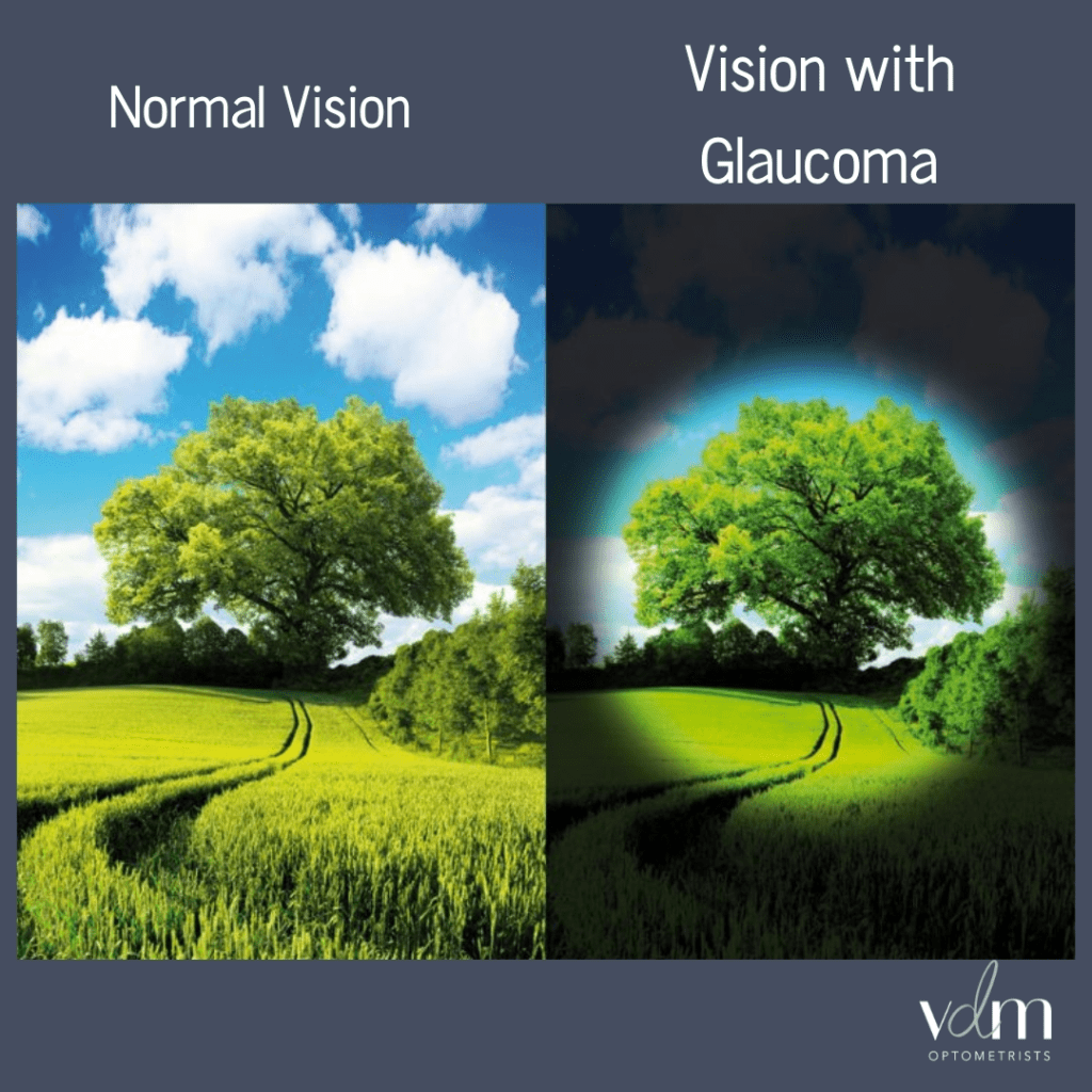 وقد يسبب المرض أيضًا ضيق في مجال الرؤية ويرى المريض حينها الأشياء الموجوده في منتصف العين فقط ولا يرى يمينها أو شمالها.