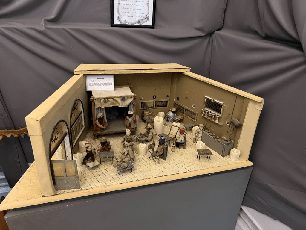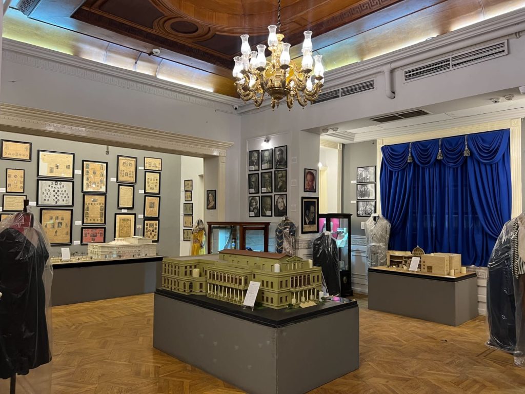 ومجموعة من الماكيتات “النماذج المصغرة” لدار الأوبرا قبل تعرضها للحريق من المعماري عصام صفي الدين ولمسرح سيد درويش في اسكندرية، وما لفت نظري ماكيت لقهوة منيرة المهدية “قهوة نزهة الفنون” المكان المخصص لتقديم عروضها الفنية مع بدايات مسرح الصالات وبدايات المسرح المصري.