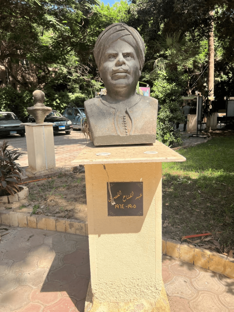 في مدخل المتحف ستجد تماثيل منحونة مقدمة من طلاب كلية فنون جميلة قسم التحنيط وهم من اختاروا تلك الشخصيات لينحتوها، ستجد عبد الفتاح القصري وكرم مطاوع وبيرم التونسي وعلي الكسار وغيرهم من عظماء الفن.