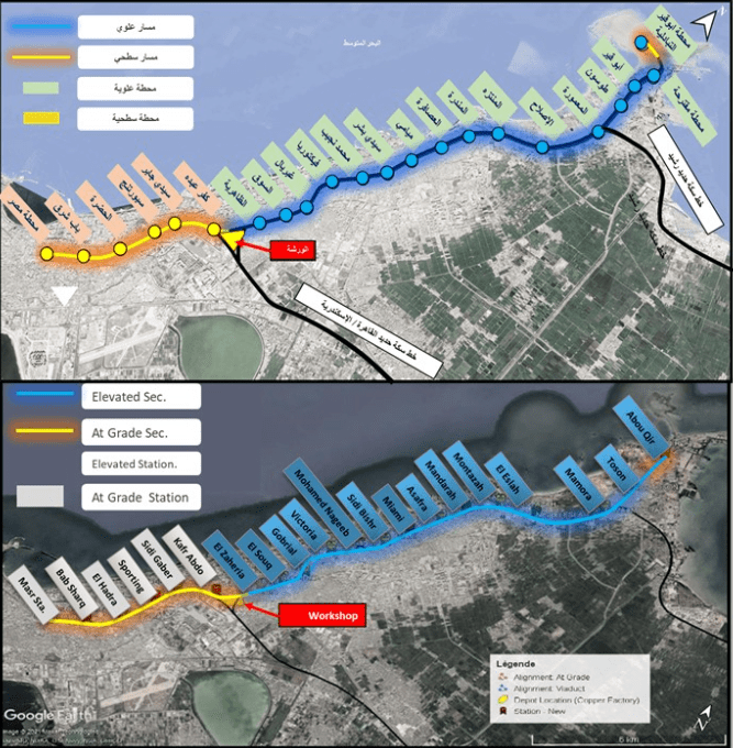 يمتد المسار 21.7 كم من محطة أبو قير حتى محطة مصر، مما يغطي مناطق كثيفة الحركة ويجعل التنقل أكثر مرونة وانسيابًا.