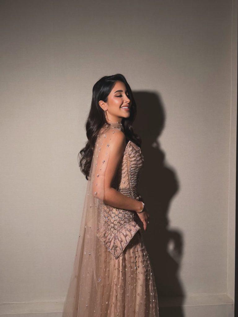 أكدت إطلالتها ريادة المصممين العرب في صناعة الهوت كوتور والموضة العالمية. كان دمج المجوهرات الناعمة مع الفستان الفخم خياراً موفقاً أبرز جمالها بأسلوب راقٍ.
