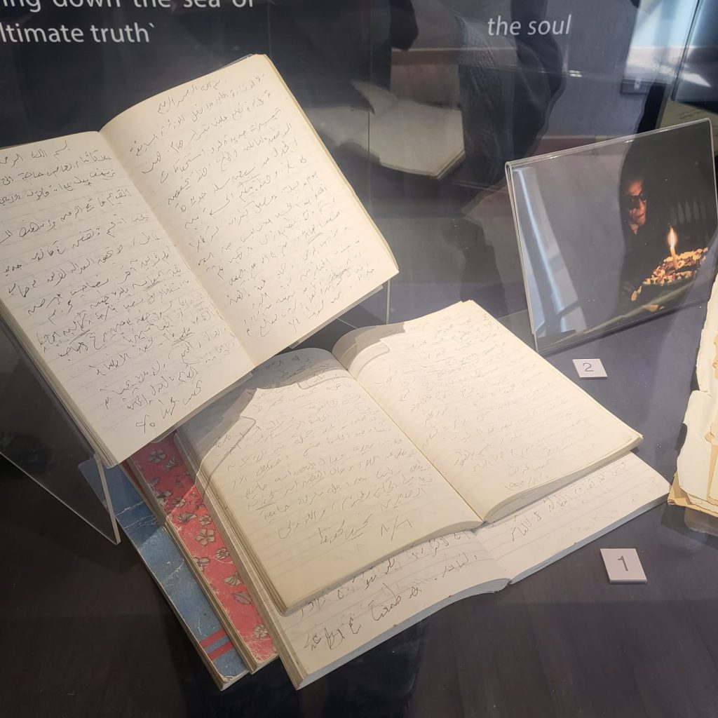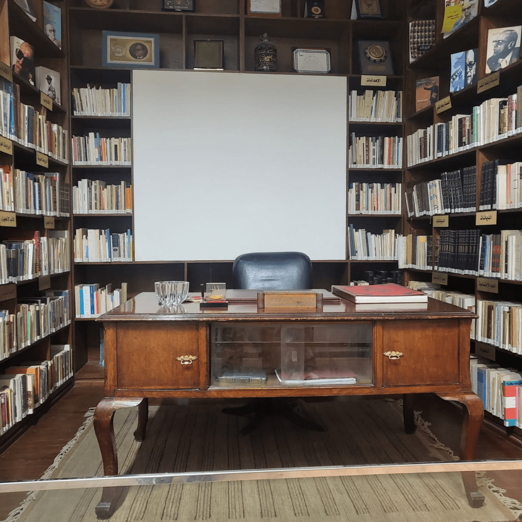 ومن قاعة أصداء السيرة لقاعة تجليات التي تضم مكتبه الذي كان سطر عليه بقلمه أهم رواياته وكل كتبه التي قرأها في حياتها والتي كتبت عنه أيضَا، وقاعة “الحارة” التي شاهدنا فيها كيف صور محفوظ الحارة المصرية، وقاعة “أحلام الرحيل” التي تتحدث عن محاولة اغتياله على إيد مجموعة من المتطرفين لمنعه من الكتابة وتضم مجموعة من الأوراق بخط يده في أثناء تدربه على الكتابة في تلك المرحلة بعد إصابته لأن الحادث أثر على أعصاب يده وأصبح لا يقوى على الكتابة سوى بضعة دقائق في اليوم، وهذا كان واضحًا في نماذج الكتابات التي عرضت في القاعة.