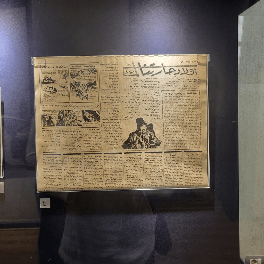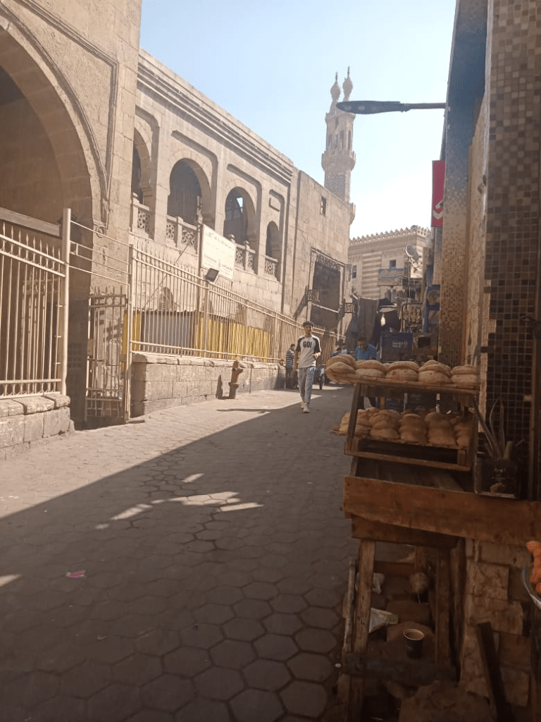فالمتحف الذي قمنا بزيارته وقع في قلب تكية أبو الذهب التي تبعد خطوات عن شارع الأزهر متحف في قلب منطقة غنية بالآثار الإسلامية ولكن في نفس الوقت مزدحمة بالمارة والأسواق والباعة الجائلين الذي طالما كان يتحدث عنهم نجيب، وفي شارع جانبي أمامه لافتة جار عليها الزمن تحت عنوان “شارع التبلية” بجانب وكالة الغوري وفي الوجهة الآخرى شارع “حمام المصبغة”