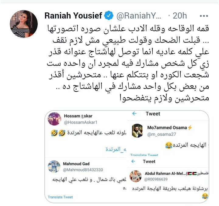 وبعد الهاشتاج اللي أقل حاجة يتقال عليه إنه لا يمس للأخلاق والأدب بصلة، وبعد ما اتصدر تويتر وبقى تريند خلال ساعات، قررت الفنانة رانيا يوسف إنها تلجأ للقضاء ولمباحث الانترنت وأخدت screen shots بكل الناس اللي تطاولوا عليها وشاركوا في الهاشتاج المقزز ده.