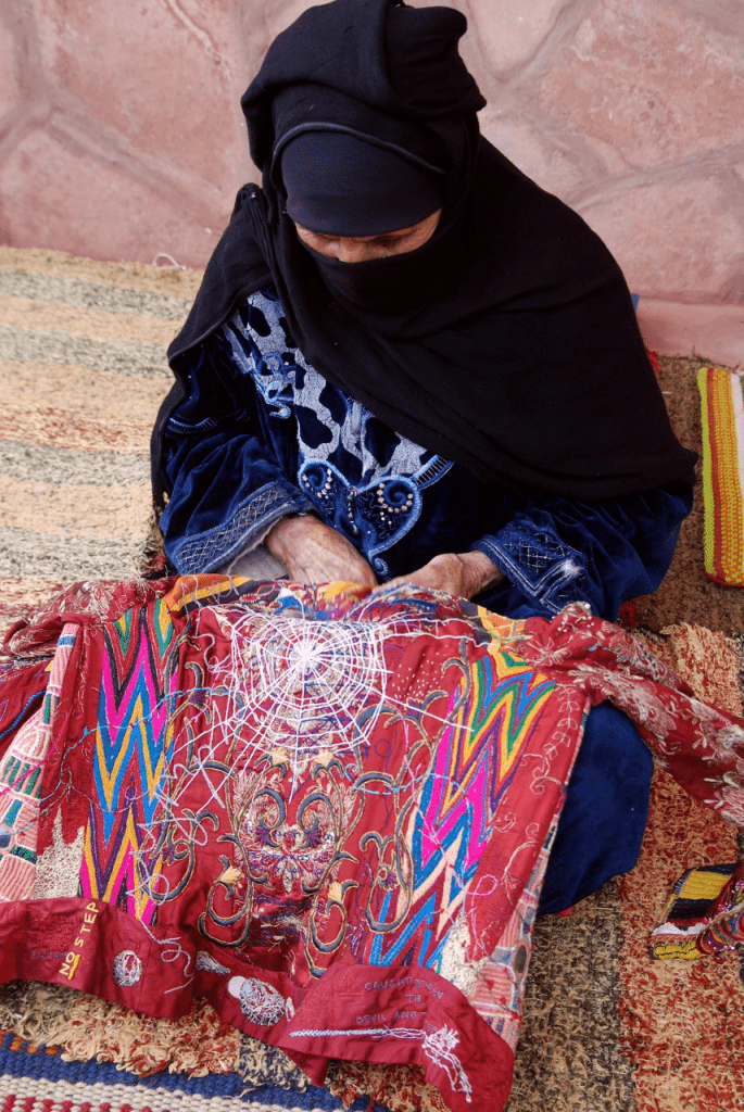 واللاجئات الفلسطينيات كمان في لبنان كان لهم دور من خلال زخارف تقليدية تحت إشراف برنامج البادية، وده برنامج من جمعية “النجدة”، بيقدر من خلاله اللاجئات الفلسطينيات يكسبوا دخل من خلال شغلهم في التطريز.