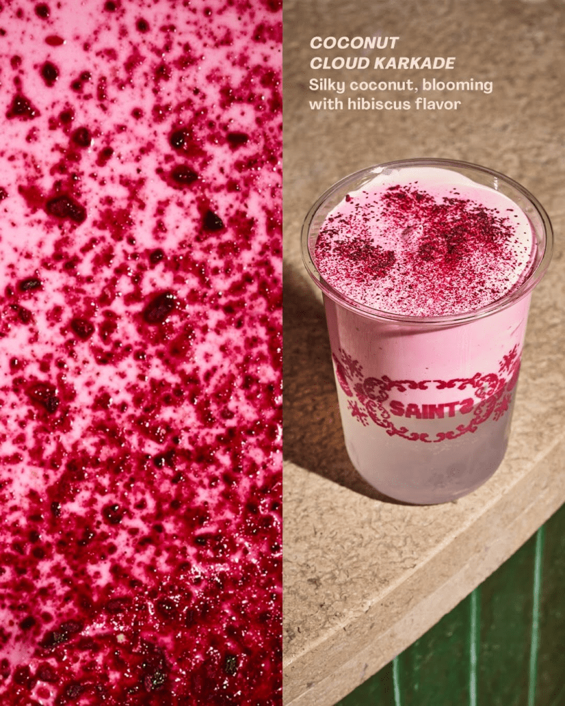 يتكون هذا المشروب من طبقات حريرية من حليب جوز الهند مع الكركديه، ليخلق سحابة من النكهات الناعمة التي ترضي عشاق المذاق الفلوري.