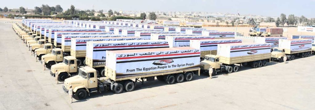 سبق وبعتت مصر مساعدات وقت وقوع الزلزال في شكل 5 طائرات عسكرية محملة بمساعدات طبية، بجانب إرسال فريق إغاثي وطبي لبلدة جندريس بريف عفرين شمالي حلب، لدعم عمليات إنقاذ العالقين تحت الأنقاض باعتبارها من أكتر المناطق تضرر في سوريا، بجانب دول عربية قدمت مساعدات عاجلة من اللحظة الأولى؛ منهم الإمارات والسعودية والجزائر وتونس والأردن وسلطنة عمان.