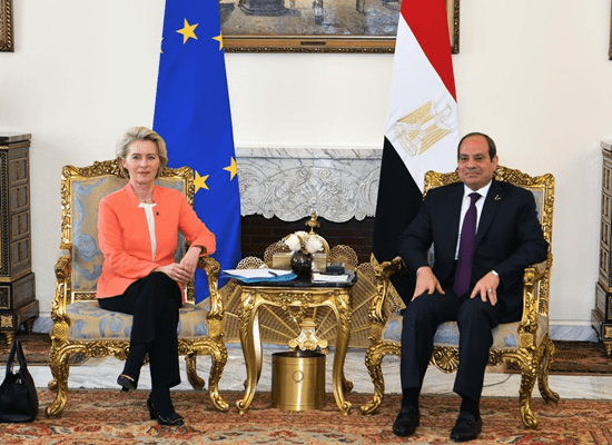 صرح الرئيس المصري عبد الفتاح السيسي، أمس الأحد، في مؤتمر صحفي عقب القمة المصرية مع مسؤولين أوروبيين، بأنه تم التوقيع على حزمة مساعدات بقيمة 7.4 مليار يورو من الاتحاد الأوروبي، شهدت التركيز على ملفات الطاقة وإنتاج الهيدروجين الأخضر ومنتدى غاز شرق المتوسط ومكافحة ظاهرة الهجرة غير الشرعية.