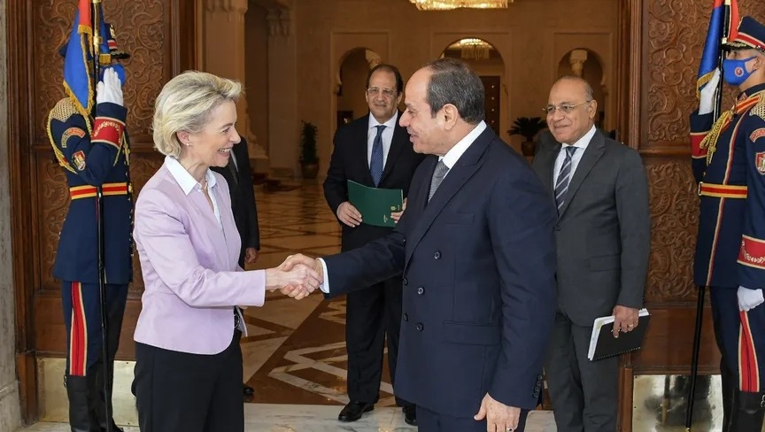 صرح الرئيس المصري عبد الفتاح السيسي، أمس الأحد، في مؤتمر صحفي عقب القمة المصرية مع مسؤولين أوروبيين، بأنه تم التوقيع على حزمة مساعدات بقيمة 7.4 مليار يورو من الاتحاد الأوروبي، شهدت التركيز على ملفات الطاقة وإنتاج الهيدروجين الأخضر ومنتدى غاز شرق المتوسط ومكافحة ظاهرة الهجرة غير الشرعية.