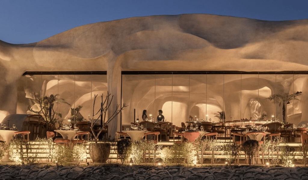 يقع هذا المطعم الحائز على جوائز عالمية في طريق نيو جيزة، ويتميز بتصميم يشبه الكهف العصري الذي يمنحك شعوراً بالدفء والسكينة.