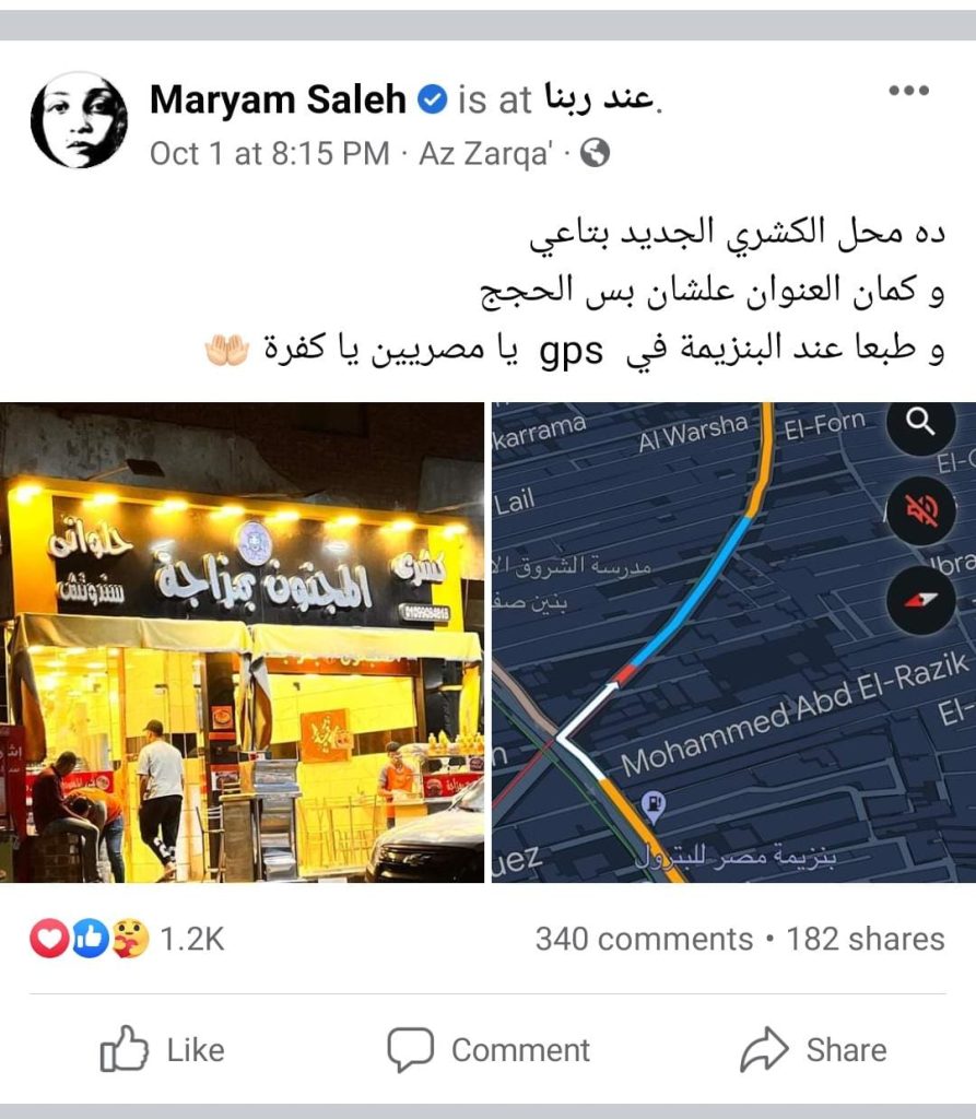 سواء المحل فعلًا بتاع مريم صالح أو لأ، لكن هو موجود على أرض الواقع مش مجرد مزحة إلكترونية.
