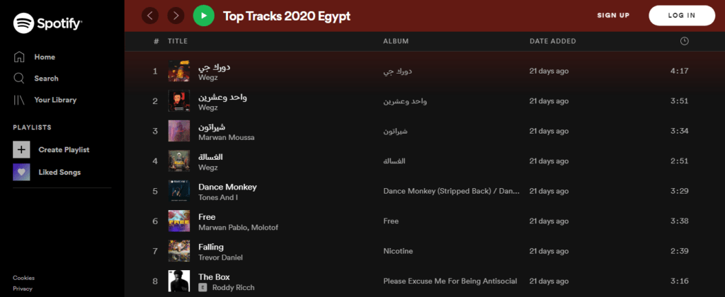 ومن خلال قائمة أكتر أغاني اتسمعت في 2020 على سبوتيفاي، كان بيحتل المراكز الأولى فيها أغاني راب، وده تغيير كبير في الذوق اللي بقى متوجه ليه الناس دلوقتي.