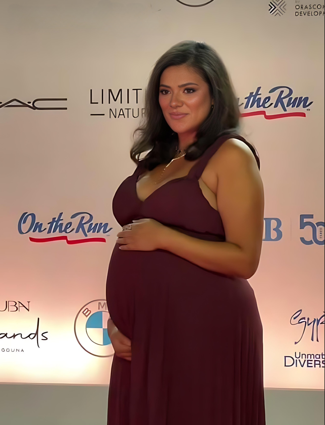رغم كونها فى المراحل الأخيرة من الحمل تبقى على وضع مولودتها الأولى أقل من شهر ونصف، ولكنها لم تكن لتفوت هذا الحدث الذى يمثل أهمية خاصة لها.