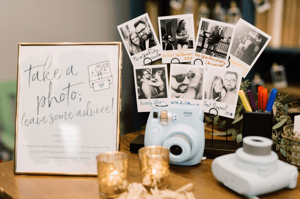 يمكنك الاستعانة بمصور يلتقط صور فورية للضيوف خلال الحفل والتي تكون جاهزة في دقائق معدودة ثم توضع في أظرف أنيقة مع رسالة قصيرة.