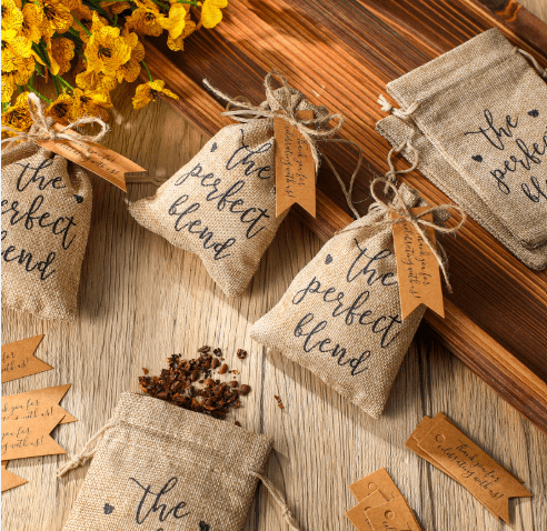 هدية عملية ومحببة للجميع، خصوصًا لعشاق القهوة. يمكنكم اختيار نوع البن المفضل لدى ضيوفلك وتغليفه في أكياس أنيقة تحمل رسائل شكر صغيرة.