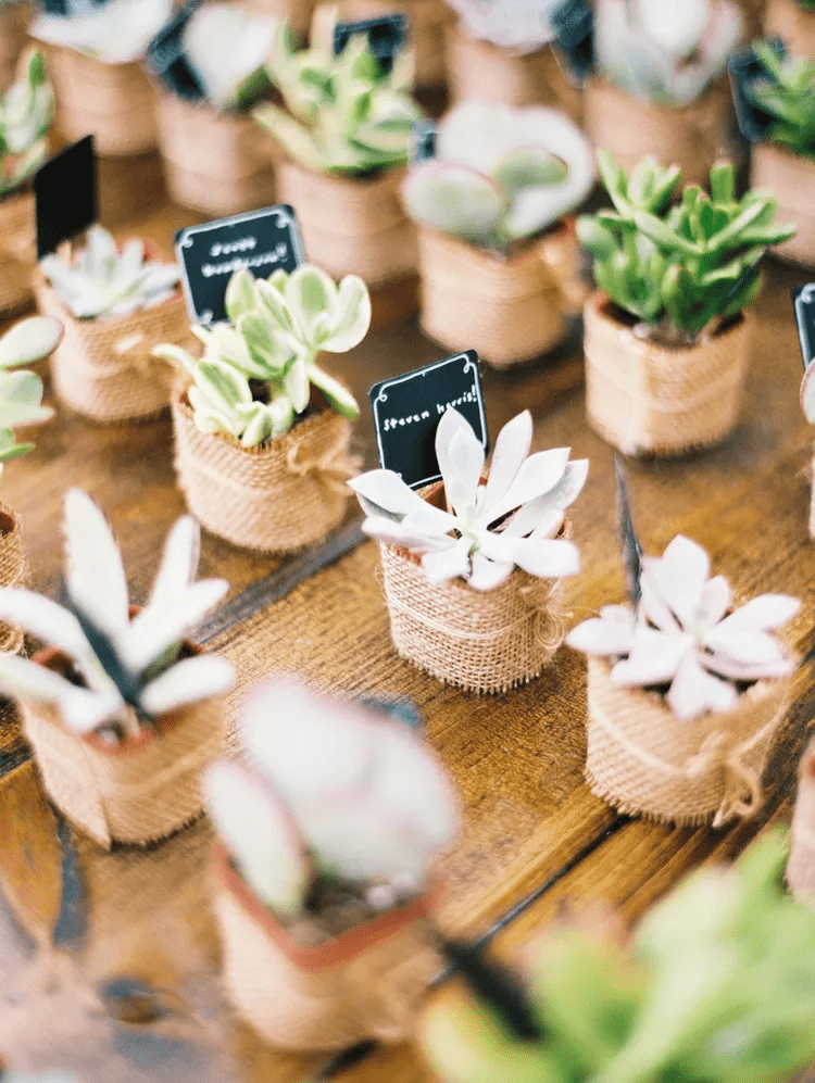 النباتات أو الصبّار في أواني صغيرة تمنح الضيوف هدية حية تنمو مع الوقت. يتذكرك فيها الضيف كلما كبرت أمامه.
