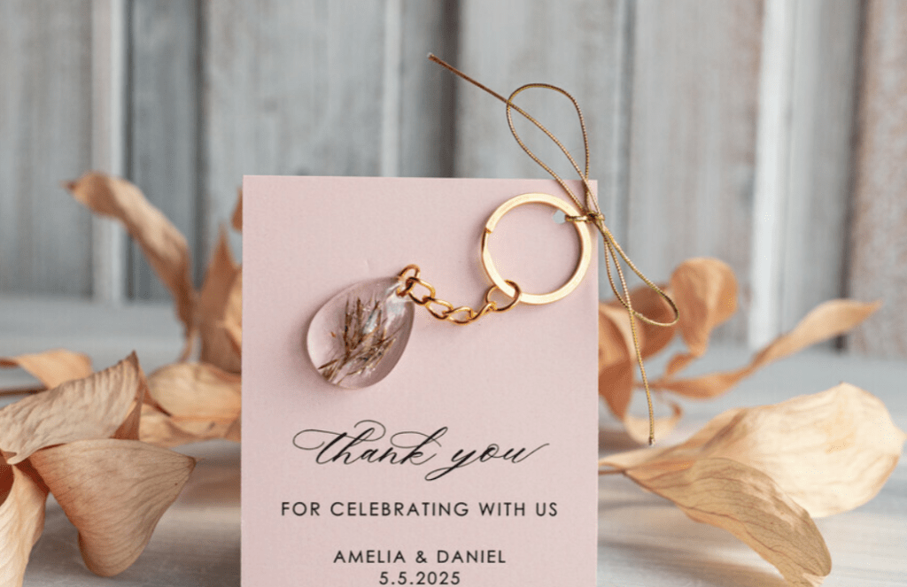 قد تبدو هدية بسيطة للوهلة الأولى، لكنها عملية جدًا وتدوم طويلًا. تخيّل ضيفك وهو يستخدم سلسلة المفاتيح يوميًا في عمله أو منزله، وفي كل مرة يتذكر يوم زفافك بابتسامة.