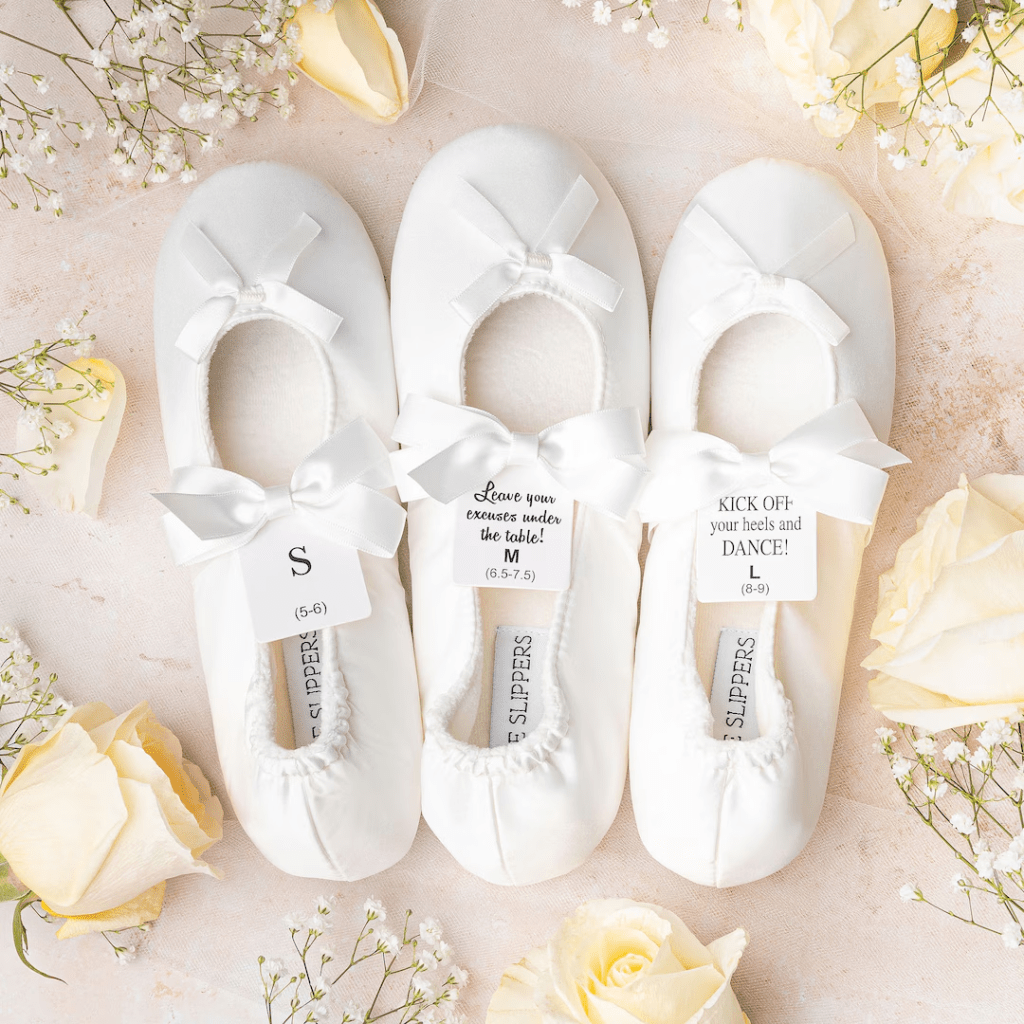هذه الهدية ليست عملية فحسب، بل تمنحهن أيضًا راحة أكبر ليتمكّن من الرقص والاستمتاع من دون عناء، كما ستبقى قطعة مفيدة معهن بعد الحفل. ويمكنك اختيار ألوان تتماشى مع ديكور الزفاف، أو إضافة لمسة شخصية مثل شريط يحمل أسماء العروسين أو تاريخ الزفاف.