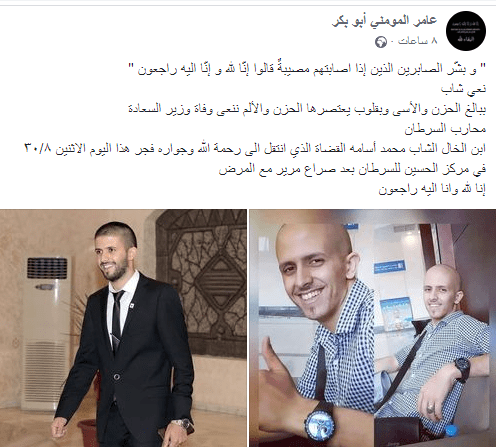 ناس كتير أتأثرت بوفاته وكتبت عن حزنها بفراقه في الأردن، وخصوصًا إنه كان أخر بوست ليه بيقول إن المرض انتشر في أربع أماكن في جسمه وبقى من الصعب السيطرة عليه. ومش بس كده ده في أخر فترة كان بيحارب فيروس كورونا مع السرطان وده اللي خلى في تعاطف أكبر معاه.
