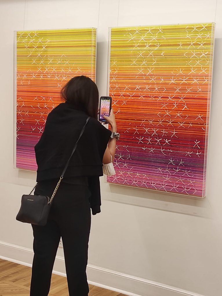 اتكلمنا كمان مع “باولا أنطا” الفنانة التشكيلية الأسبانية، اللي قالت إنها استمتعت بالتعرف على مصر، وكلمتنا عن نفسها وعن اللوحة اللي بتشارك بها في المعرض.