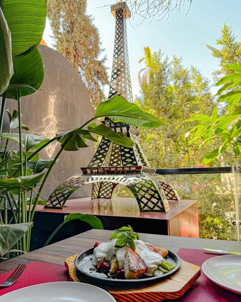 المكان يتميز بالهدوء والإضاءة الطبيعية، مع شرفات مطلة على برج إيفل مصغر، مما يمنح تجربة صباحية ساحرة ومريحة.
