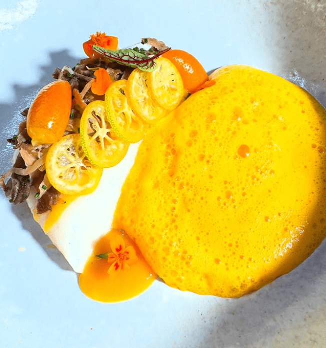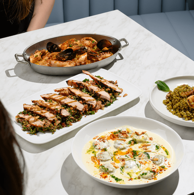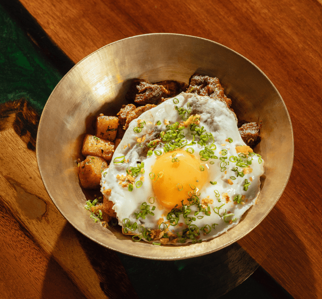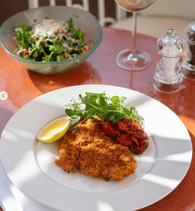 كما يقدم قائمة إفطار متكاملة تشمل شنيتزل الدجاج ورافيولي الذرة والبوراتا أو فيتوتشيني السلطعون مع تشكيلة حلويات مميزة.