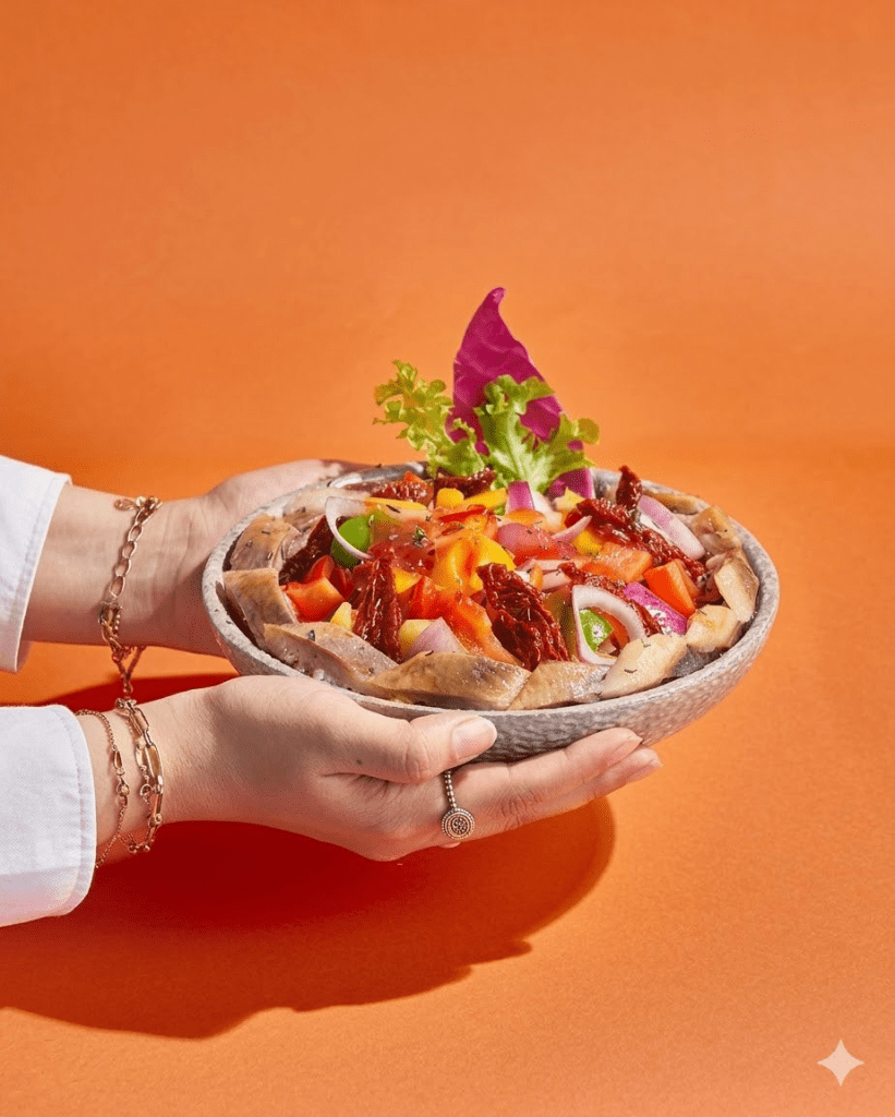 يعتبر “الحمادي” من الأسماء اللامعة التي قررت دمج الفاكهة مع الأسماك، حيث قدم سلطة رنجة بالمانجا كأحد أغرب اختراعات الرنجة والفسيخ في عيد الفطر 2026