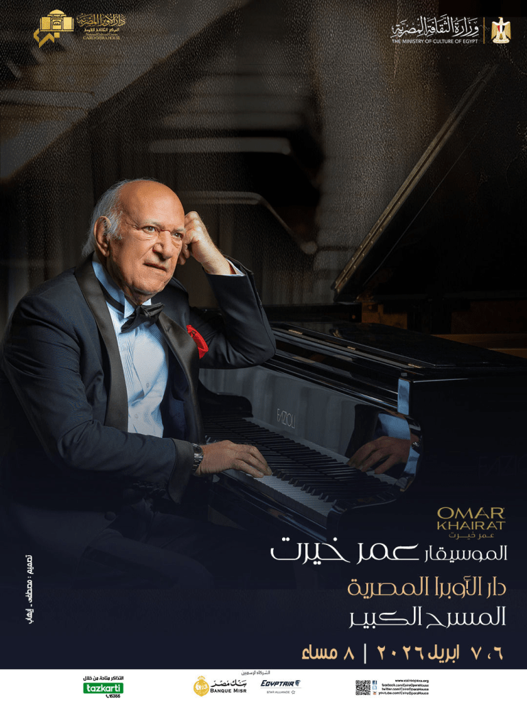 كما يقدم الموسيقار العالمي عمر خيرت حفلًا موسيقيًا مميزًا على المسرح الكبير في دار الأوبرا المصرية يومي 6 و7 أبريل.